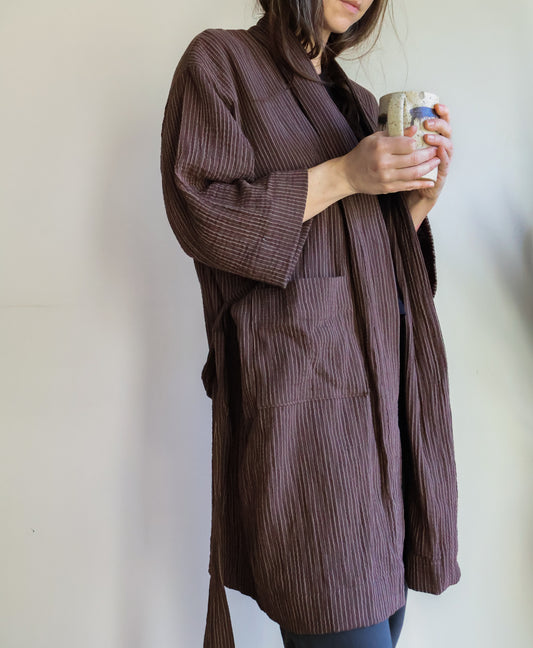 Organic Cotton Gauze Robe Brown Mill Stripe